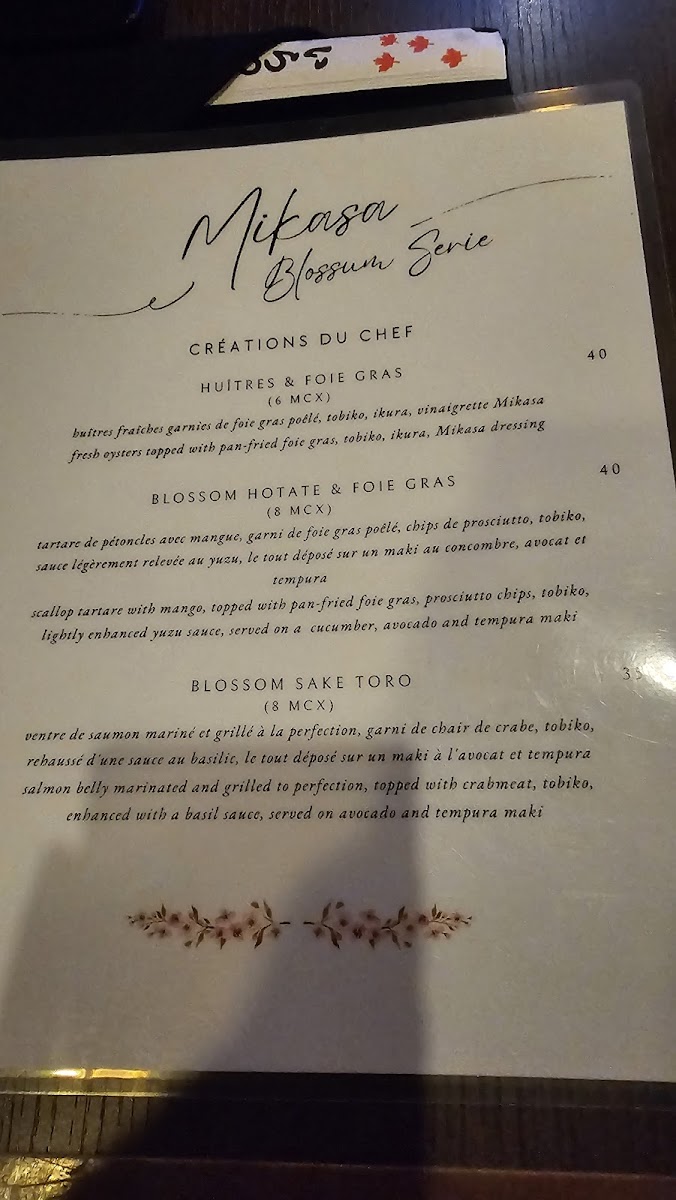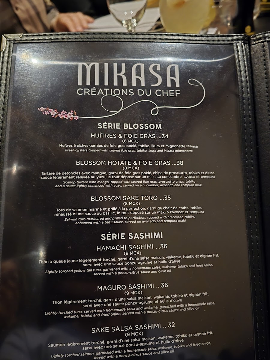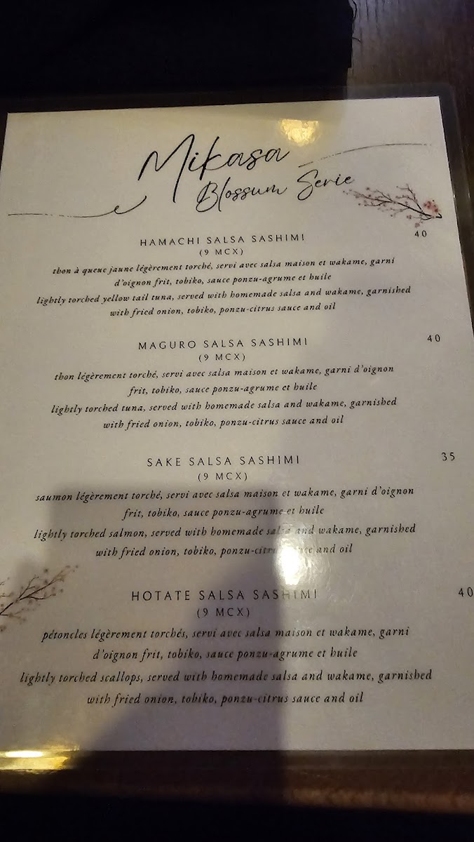 Mikasa Sushi Bar Menu